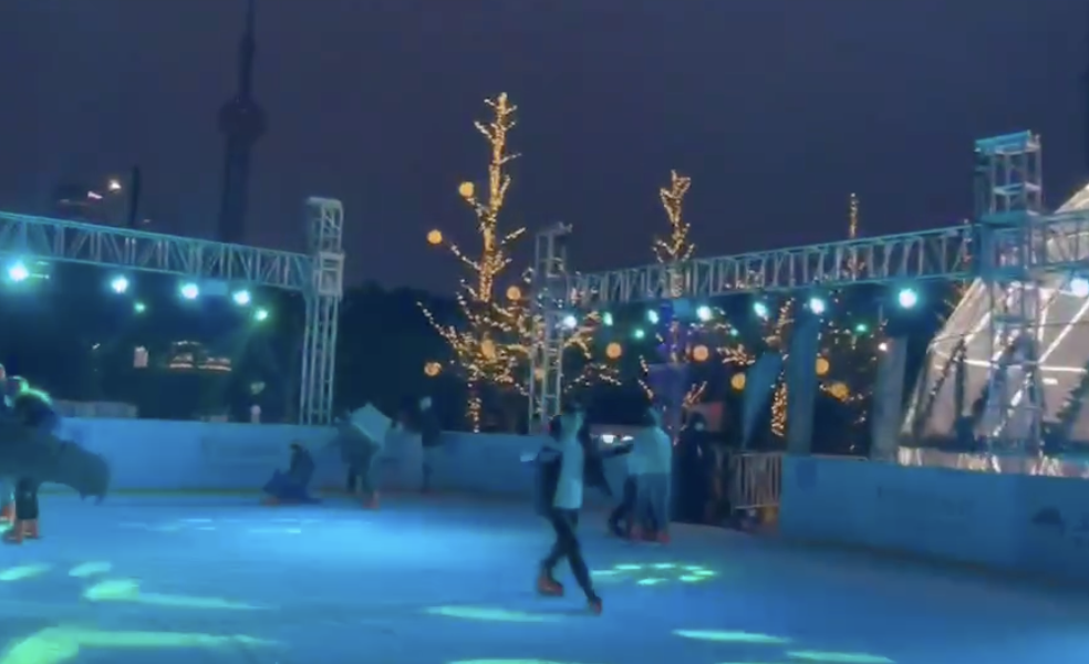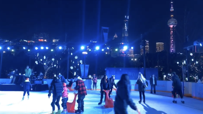 “真是太喜欢北外滩的露天溜冰场了~”
