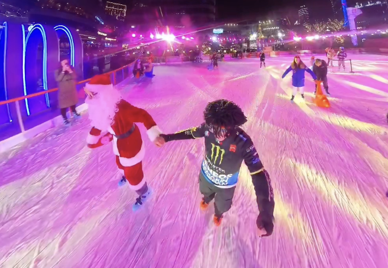 “圣诞夜溜冰,魔爪赛车服牵手圣诞老人~”